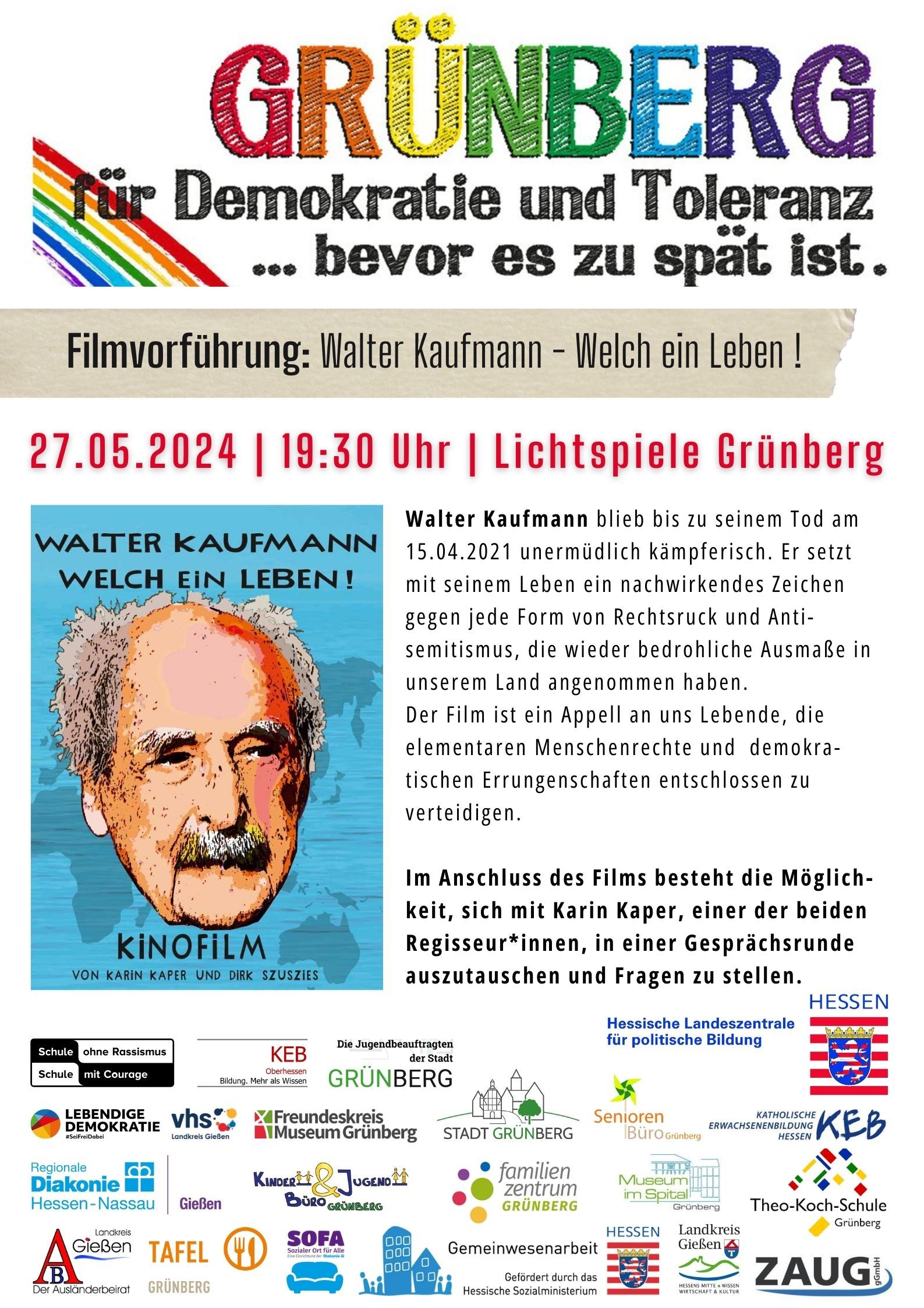 Walter Kaufmann blieb bis zu seinem Tod am 15.04.2021 unermüdlich kämpferisch. Er setzt mit seinem Leben ein ein nachwirkendes Zeichen gegen jede Form von Rechtsruck und Antisemitismus, die wieder bedrohliche Ausmaße in unserem Land angenommen haben. Der Film ist ein Appell an uns Lebende, die elementaren Menschenrechteund demokratischen Errungenschaften entschlossen zu verteidigen.