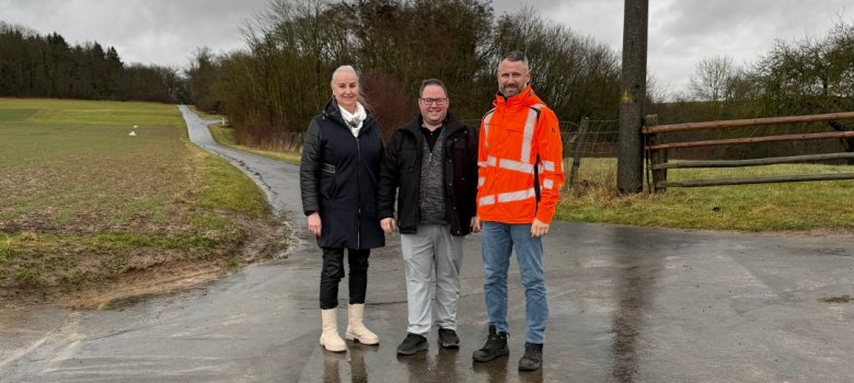 Bild v.l.n.r.: Bärbel Lotz (Fachbereichsleitung Bauen), Bürgermeister Marcel Schlosser, Viktor Brodt (Bauhofsleiter)